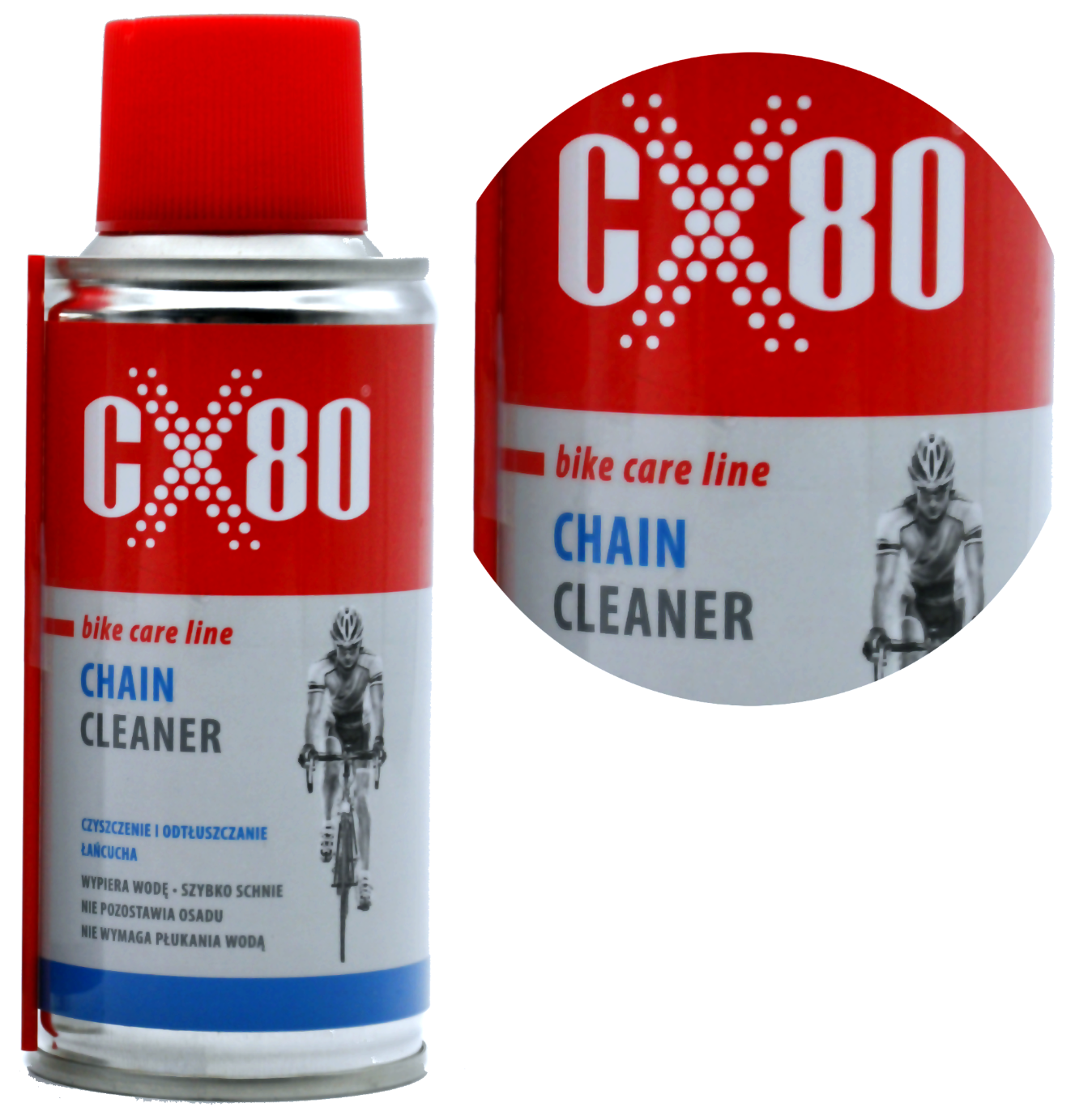 CX80 Bike Care Line Chain Cleaner to wieloskładnikowy preparat czyszczący, polecany dla kolarzy wyczynowych, pasjonatów jazdy rowerowej oraz wszystkich użytkowników rowerów, dbających o czystość układu napędowego oraz pozostałych, metalowych powierzchni w swoim rowerze. Preparat wykazuje wysoką skuteczność w usuwaniu szerokiej gamy zabrudzeń, w szczególności resztek smarów oraz zabrudzeń pochodzenia organicznego, w tym tłuszczy i błota.