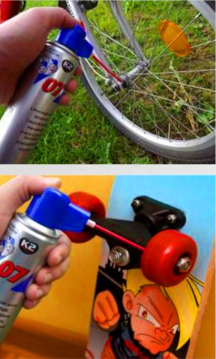 Eliminuje piski i zgrzyty elementów metalowych, plastikowych, gumowych i mechanicznych np.: