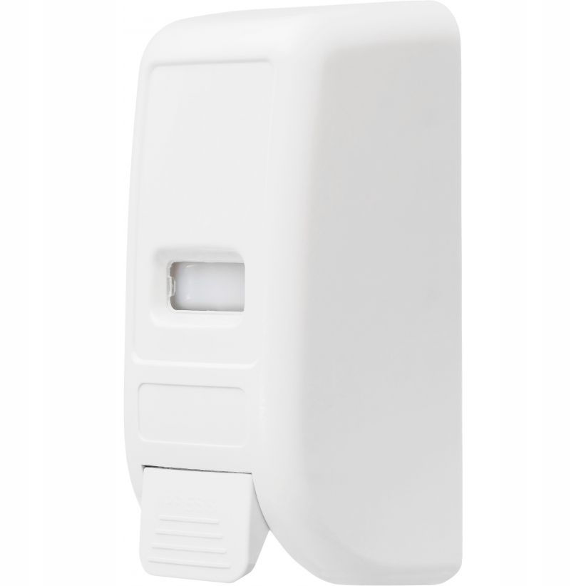 wysokiej jakości, estetyczny ścienny dozownik do mydła w płynie, o pojemności 1l. Posiada dolny system aplikacji płynu oraz duży, wygodny przycisk do jego dozowania. Jednorazowo zwalnia dawkę 0,8 ml. Super wydajny. Napełnienie dozownika pozwala na aplikację ponad 1000 porcji produktu!