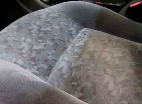 Przykład użycia LOTARA na mocno zabrudzonym fotelu kierowcy.