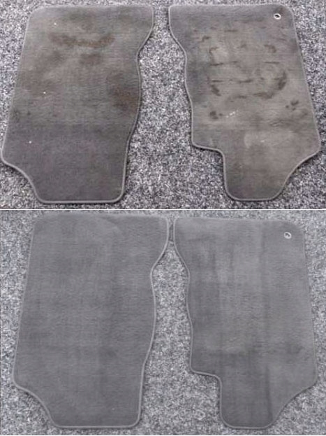 Przykład użycia LOTARA i potwierdzenie skuteczności jego działania podczas czyszczenia mocno zabrudzonych dywaników samochodowych.