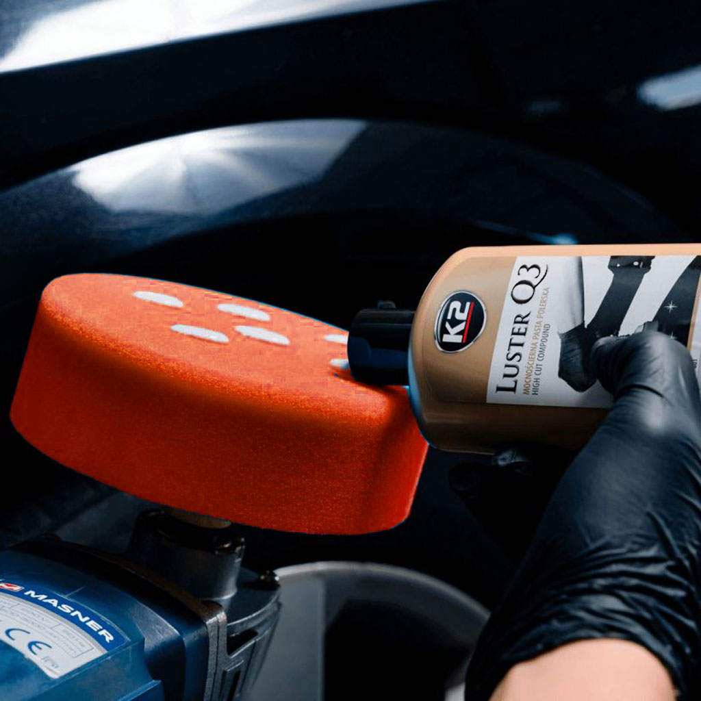 Według naszych doświadczeń najlepszy efekt uzyskasz stosując Luster Q3 wraz z gąbkami średniotwardymi koloru pomarańczowego czyli: