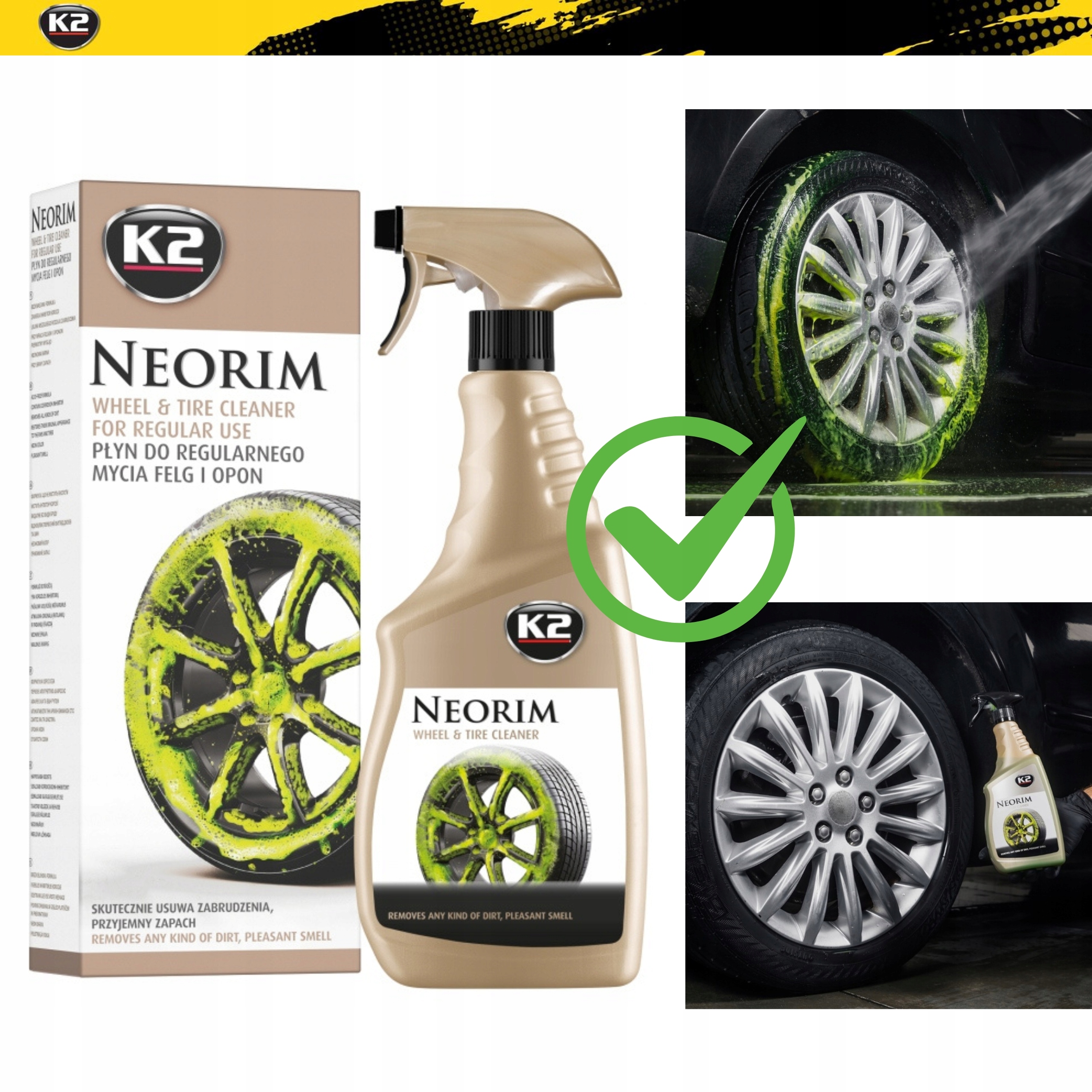 K2 Neorim to zaawansowany zasadowy płyn do czyszczenia felg i opon, stworzony z myślą o wymagających entuzjastach kosmetyki samochodowej. Dzięki potężnej, bezkwasowej formule, Neorim skutecznie eliminuje drogowe osady, pył hamulcowy oraz inne zabrudzenia, jednocześnie pozostając bezpiecznym dla czyszczonych powierzchni. Jego neonowy kolor i gęsta piana nie tylko efektywnie penetrują brud, ale także zapewniają efekt "WOW", który sprawia, że felgi wyglądają jak nowe.