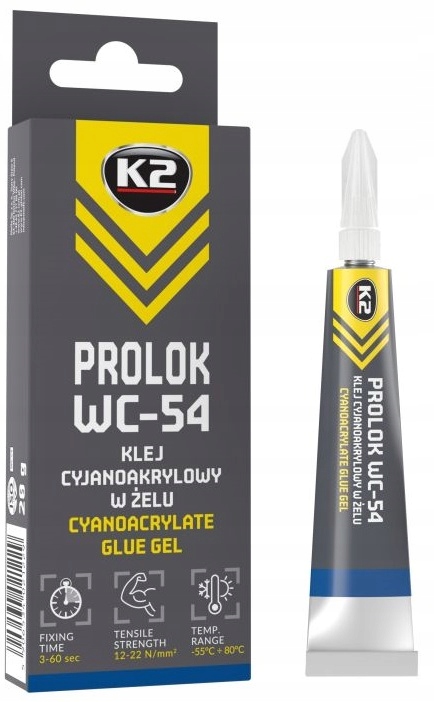 Oczyścić i odtłuścić powierzchnię. Nanieść niewielką ilość kleju K2 WC54 na jedną z klejonych powierzchni, złożyć je ze sobą, mocno ścisnąć przez 10 - 30 sekund. Im cieńsza jest naniesiona warstwa kleju, tym połączenie jest mocniejsze.