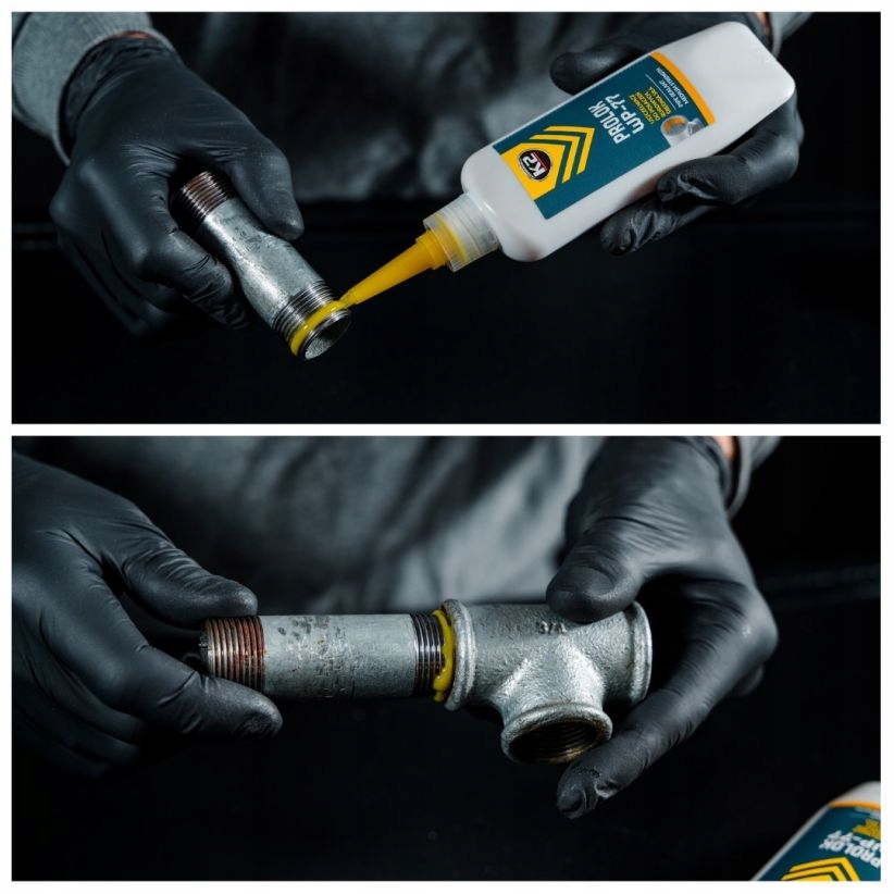 Produkt ułatwia i przyspiesza montaż elementów hydraulicznych (kształtki, rury, krany, zawory, korki, manometry itp.) wykonanych z miedzi, mosiądzu, aluminium, stali czarnej i kwasoodpornej. Dzięki swojej tiksotropowej konsystencji idealnie uszczelnia mocowane elementy. Po zaschnięciu tworzy połączenie odporne na ciśnienie do 680 bar, które nie starzeje się i jednocześnie zabezpiecza przed drganiami i wibracjami. Uszczelniacz zawiera barwnik ultrafioletowy, dzięki czemu za pomocą lampy UV możemy skontrolować poprawność wykonanego połączenia.
