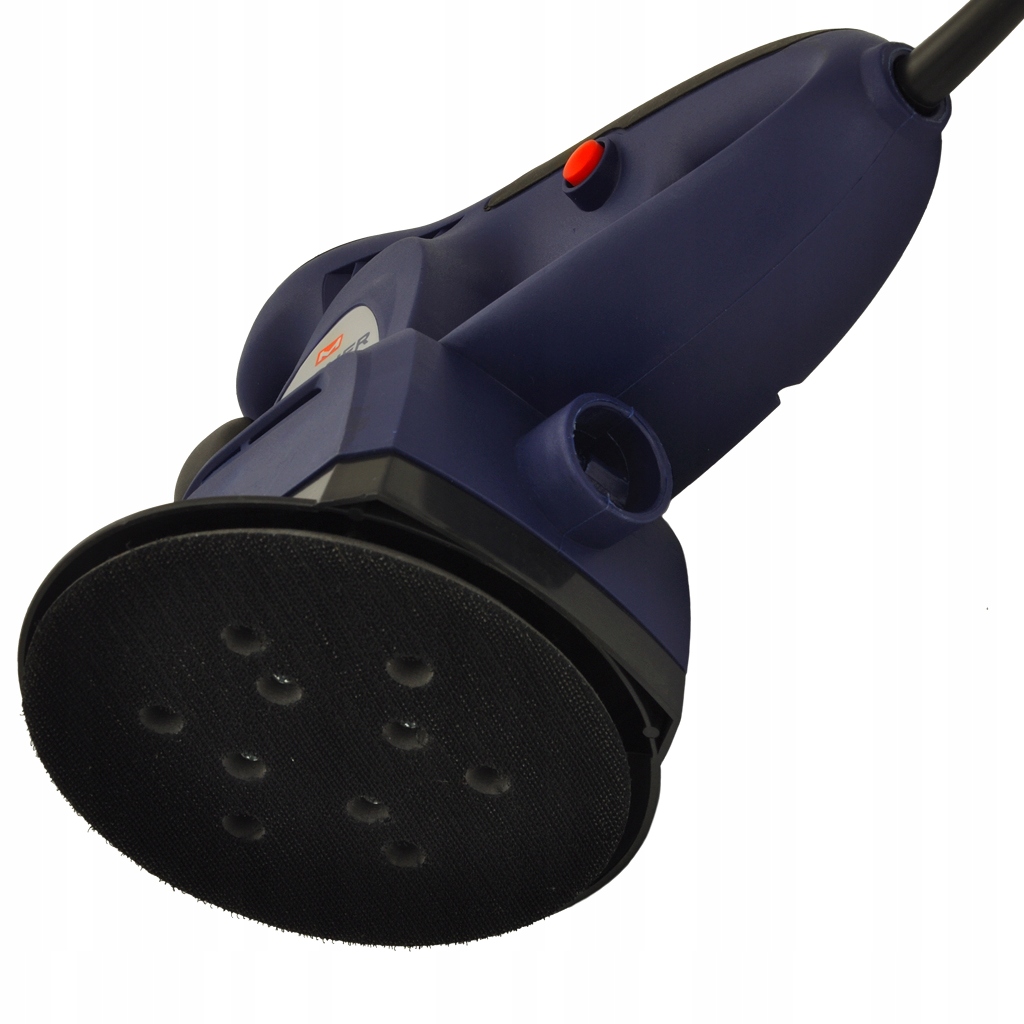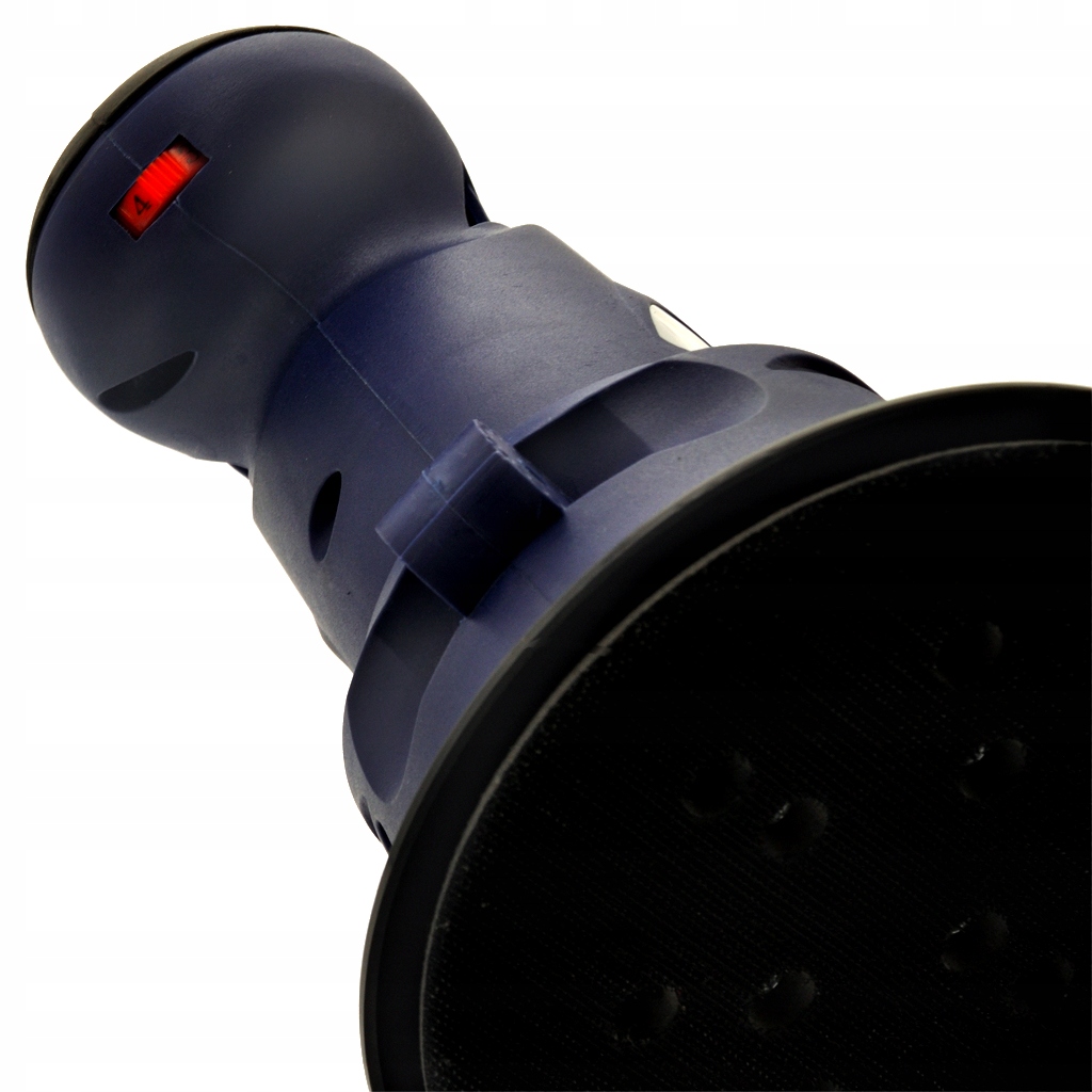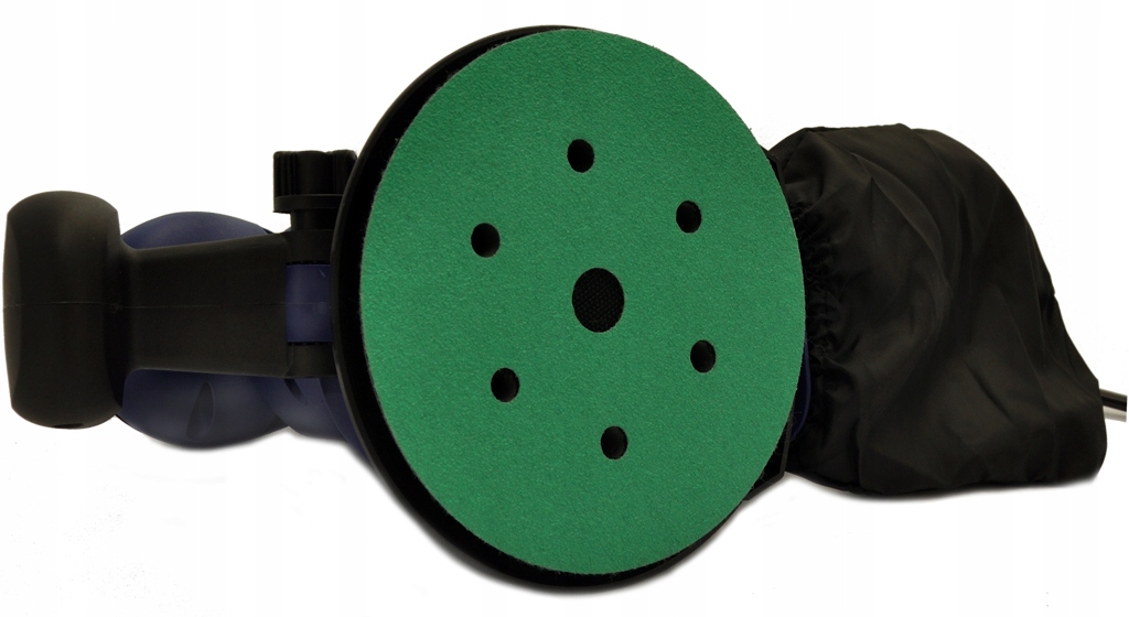 Szlifierka wyposażona w 150 milimetrową tarczę szlifierską mocowaną na rzep, z 6-cioma otworami.