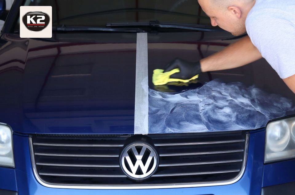 2. Kolistymi ruchami nanieść cienką warstwę K2 Ultra Cut przy pomocy miękkiej szmatki lub aplikatora gąbkowego.