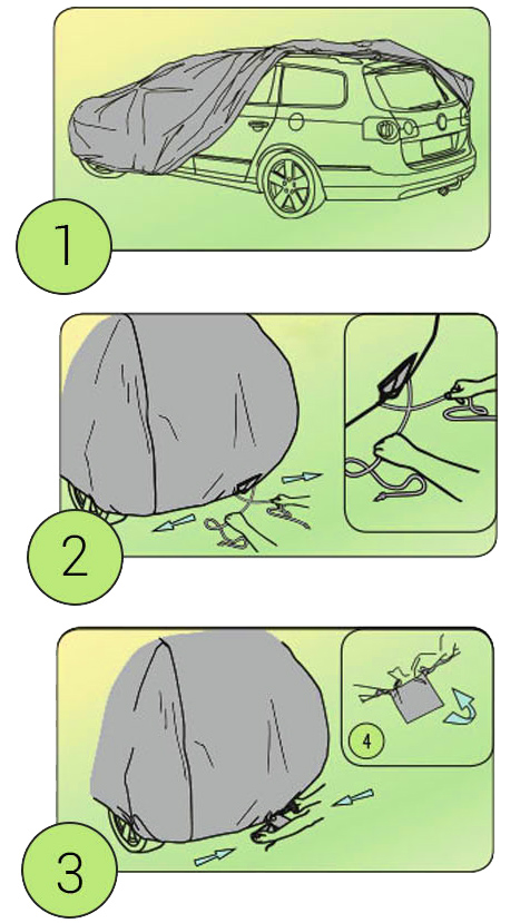 - Pokrowiec do użytku tylko na zaparkowanym samochodzie - nie może być używany podczas transportu samochodu na lawecie.