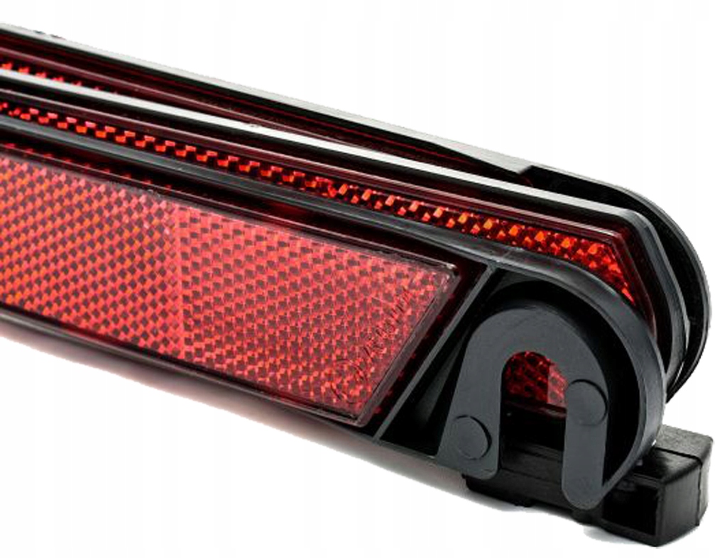 - odblaskowy czerwony kolor spełniający standardowe normy europejskie ECE R27